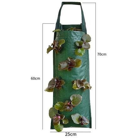 Viseča vreča iz trpežnega PE za gojenje cvetja, drobnega vrtnega sadja ali zelenjave, velikost 54 × 25 cm. Celoten opis