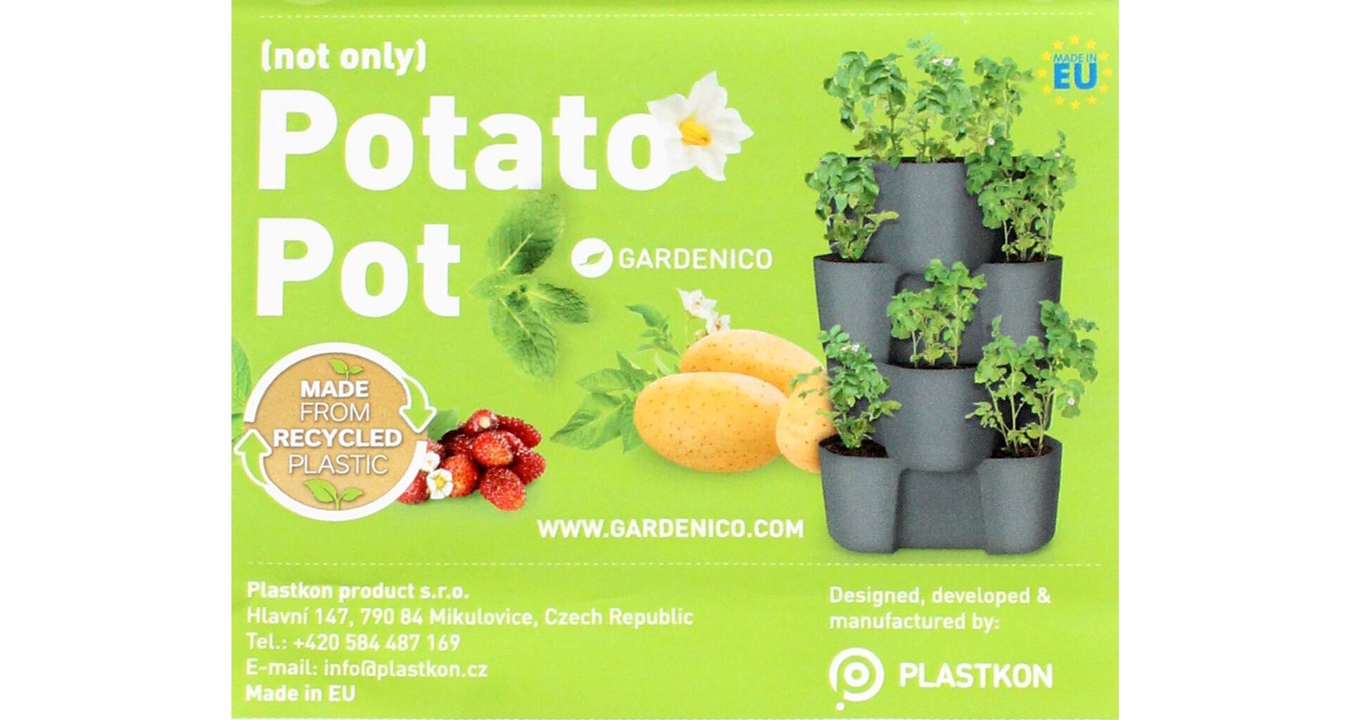 Plastkonova posoda za gojenje je praktičen pripomoček za vsakega vrtnarja. To zložljivo dvignjeno gredico sestavljajo štirje nivoji in se lahko uporablja ne le za gojenje krompirja, temveč tudi jagod, zelišč itd. Uporaba je preprosta, preprosto napolnite vsak nivo z zemljo in sadikami ter dodajte še en nivo. Skozi stranice in sredino se preliva voda. Zaradi lukenj na dnu vsake plasti voda teče v spodnje plasti. Ta greda ne vsebuje krožnika.