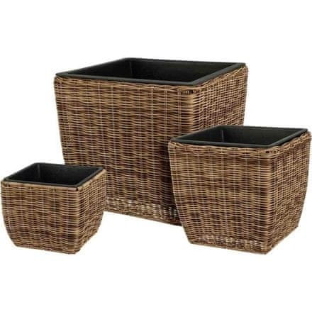 Komplet kvadratnih loncev – 3 kosi Material: poliratan, plastika Dimenzije: 21×21×18 cm 28×28×26 cm 36×36×32 cm Barva: rjava Celoten opis