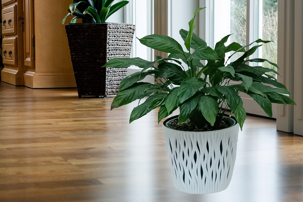 shumee BELI cvetlični lonec 16cm OKROGEL pokrov s krožničkom + vložek POLJSKI IZDELEK OK!