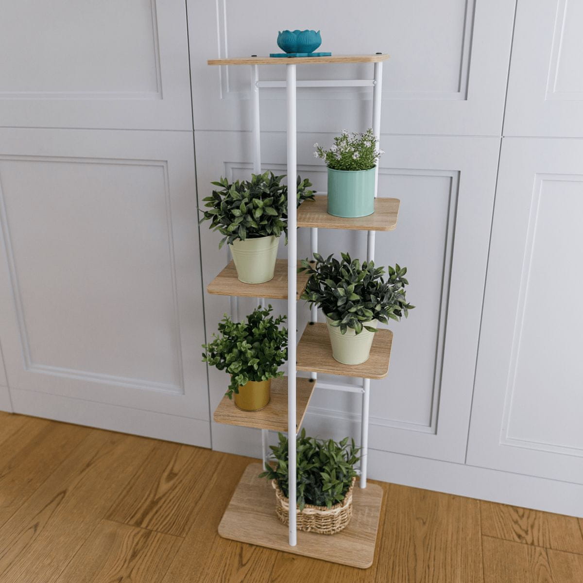 KONDELA Stojalo za rože Ledor tip 1 - belo / sonoma hrast