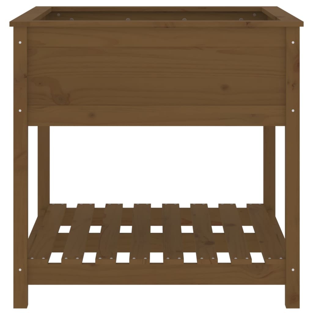 Vidaxl Visoka greda s polico med. rjava 82,5x82,5x81 cm trdna borovina