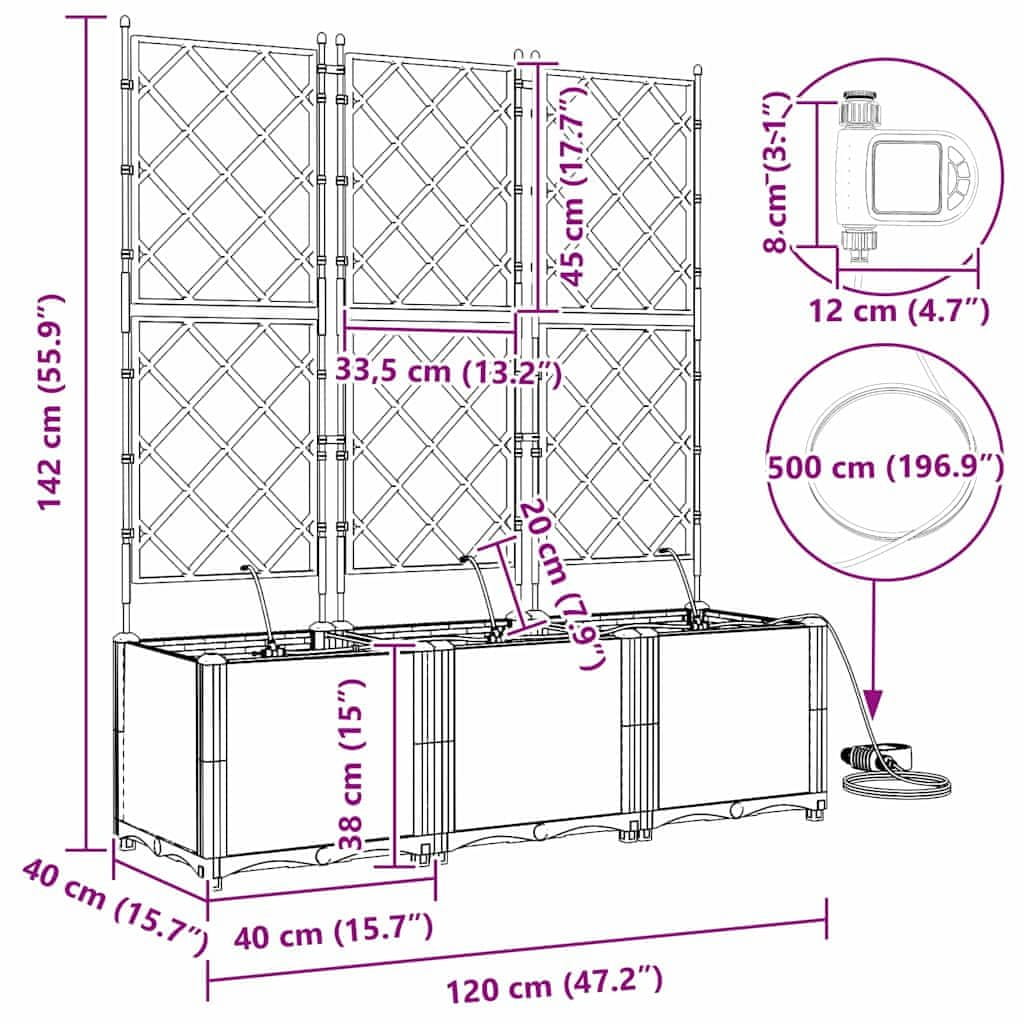 • Sistem namakanja: Ima vgrajen samodejni mehanizem za zalivanje, ki ohranja rastline na optimalni ravni vlažnosti. Idealno za tiste, ki imajo natrpan urnik, a si želijo zdrave rastline brez vsakodnevnega zalivanja.