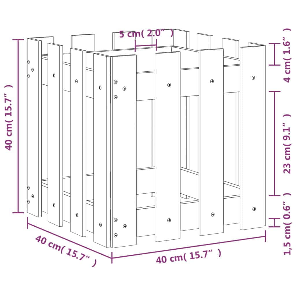 Vidaxl Vrtno korito z ograjico 40x40x40 cm impregnirana borovina