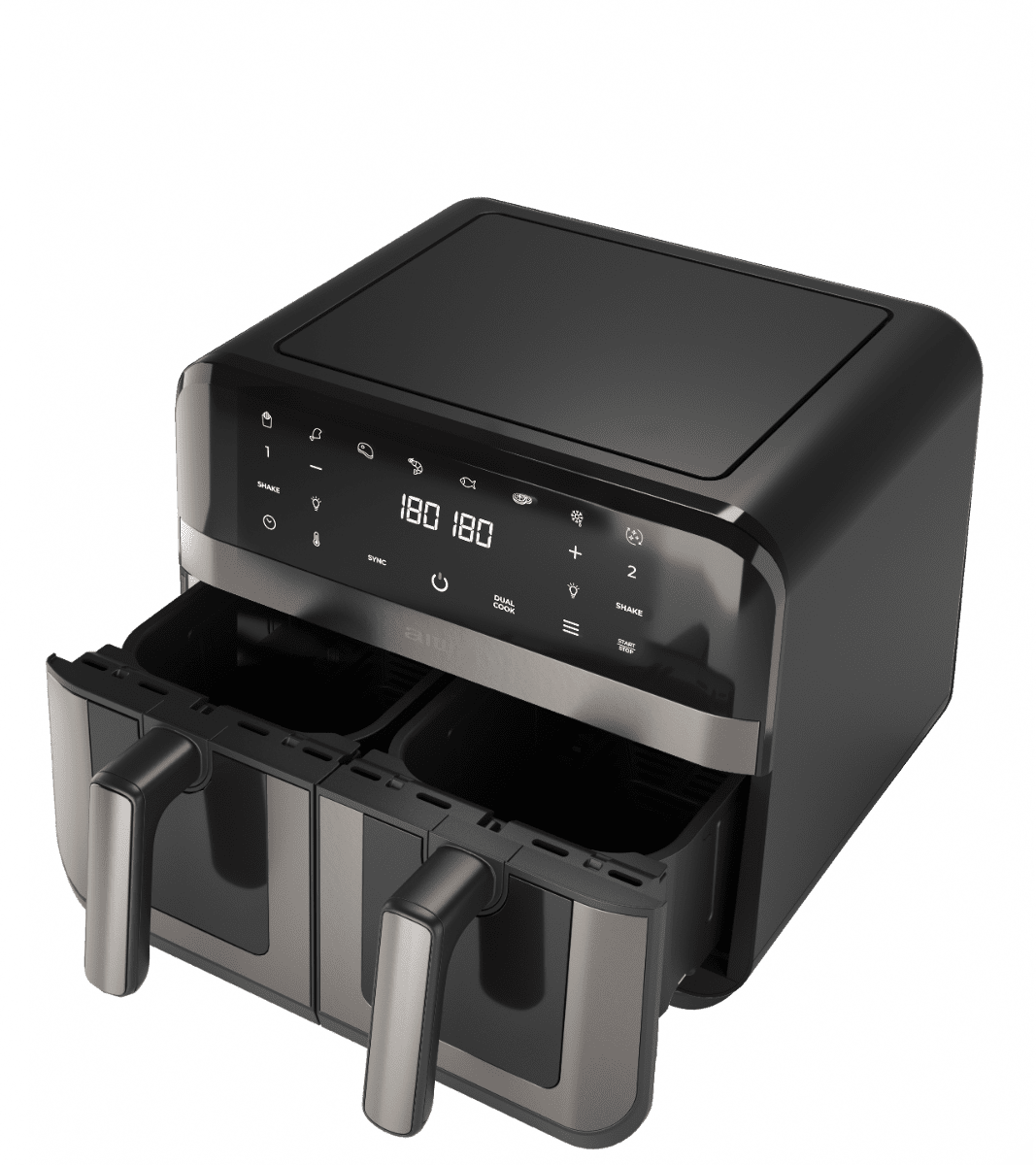 • Dvojna košara (2 × 4,5 L) – hkratna priprava dveh jedi brez mešanja okusov.
