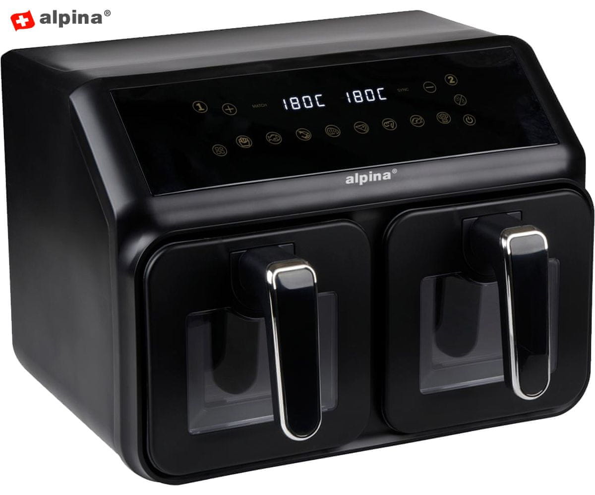 Cvrtnik ALPINA s prostornino 8L (2× 4L) je novost na trgu cvrtnikov, saj ga odlikuje izjemen digitalni zaslon na dotik in dve posodi za pripravo hrane. Z najnovejšo tehnologijo cvrtja na vroč zrak brez uporabe olja bo vaša hrana bolj zdrava in kuhana hitreje kot pri drugih napravah. Okus hrane dobi pri cvrtju, pečenju in kuhanju vaših najljubših jedi popolnoma nove razsežnosti, hrana pa vsebuje do 80% manj maščob.