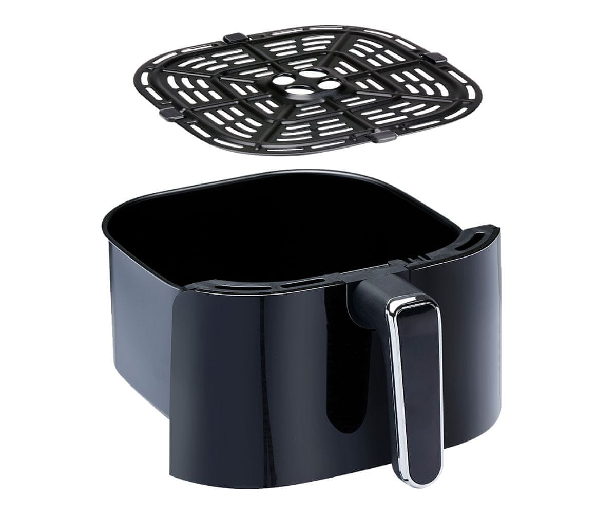 | Lastnosti | digitalni zaslon na dotik, 360° kroženje zraka, prevleka proti prijemanju hrane na posodi, nastavljanje temperature, samodejni izklop, časovnik, ročaj s tehnologijo proti pregrevanju, zaščita pred pregrevanjem, zračni filter, protizdrsne nogice… |
