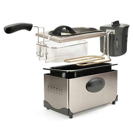 - košara in posoda za olje sta primerni za pomivanje v pomivalnem stroju