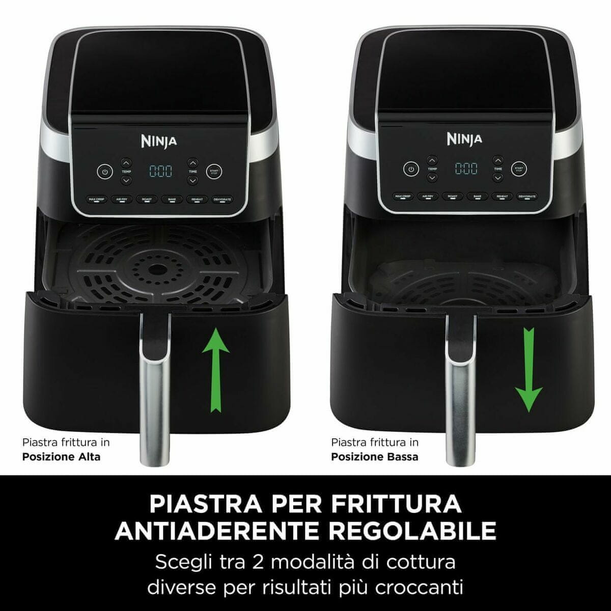 NINJA AF180EU zračni cvrtnik združuje učinkovitost in zmogljivost ter ponuja praktično rešitev za sodobno kuhinjo. Z močjo 2000 W zagotavlja hitro in enakomerno segrevanje, kar omogoča pripravo hrustljavih jedi z malo ali brez olja, idealno za bolj zdravo prehrano. Njegova prostornina 6,2 litra je ena izmed glavnih prednosti, saj omogoča kuhanje večjih količin za družine ali druženja, brez žrtvovanja prostora ali udobja. Oblikovanje v črni in sivi barvi daje prefinjen in eleganten videz, ki se zlahka vklopi v katerokoli sodobno kuhinjsko okolje. Poleg tega ima notranjo nelepljivo površino, ki olajša čiščenje in preprečuje prijemanje hrane, kar izboljša vsakodnevno uporabo. Evropski tip vtiča zagotavlja združljivost in varnost pri električni povezavi. Ta zračni cvrtnik je vsestranska alternativa za pripravo klasičnih ocvrtih jedi in bolj zahtevnih receptov, optimizira čas in zmanjšuje vnos maščob. NINJA AF180EU predstavlja pravo ravnovesje med močjo, prostornino in funkcionalnostjo, zasnovan za tiste, ki iščejo učinkovitost in praktičnost v domači uporabi.