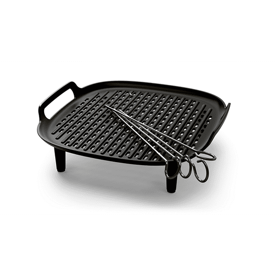• Z ploščo za žar lahko pripravite popolnoma pečene ribe, meso ali zelenjavo, medtem ko 4 nabodala omogočajo pripravo okusnih zelenjavnih ali mesnih ražnjičev.