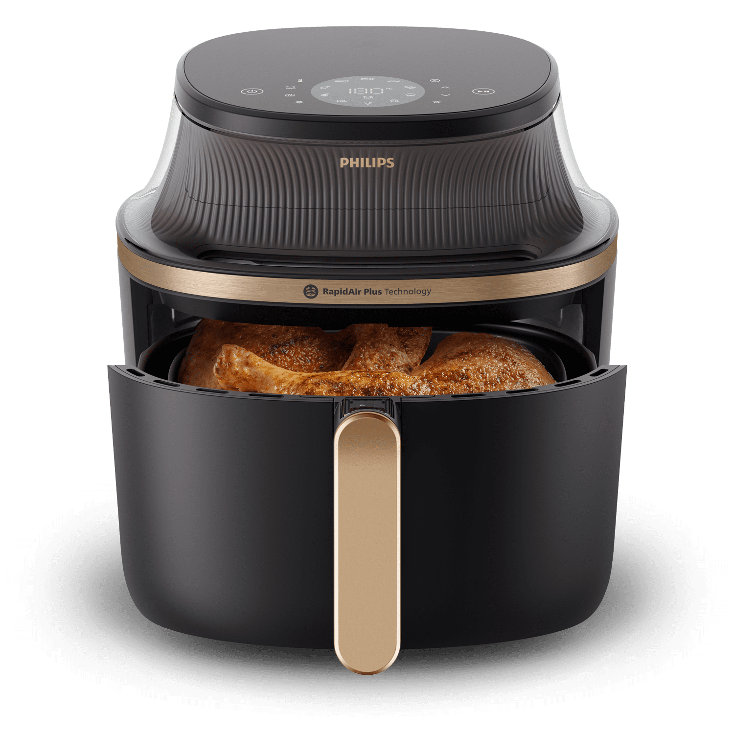 Tehnologija RapidAir Plus je rešitev za vse želite hitro pripraviti okusne in hrustljave obroke. S svojo patentirano in edinstveno obliko zvezde omogoča hitrejše kroženje vročega zraka okoli in skozi hrano. To zagotavlja enakomerno kuhanje tako znotraj kot zunaj, zato boste uživali v okusnih domačih obrokih kar do 30% hitreje.