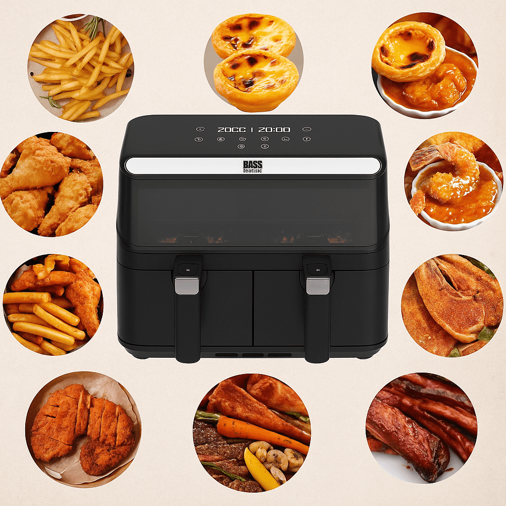 Cvrtnik na vroč zrak Bass Polska s prostornino 8,5 litra je naprava, ustvarjena za ljudi, ki cenijo zdravo, hitro in priročno pripravo obrokov. Zahvaljujoč sodobnemu dizajnu, elegantnemu videzu in naprednim funkcijam bo idealen dodatek tako domačim kuhinjam kot restavracijam.