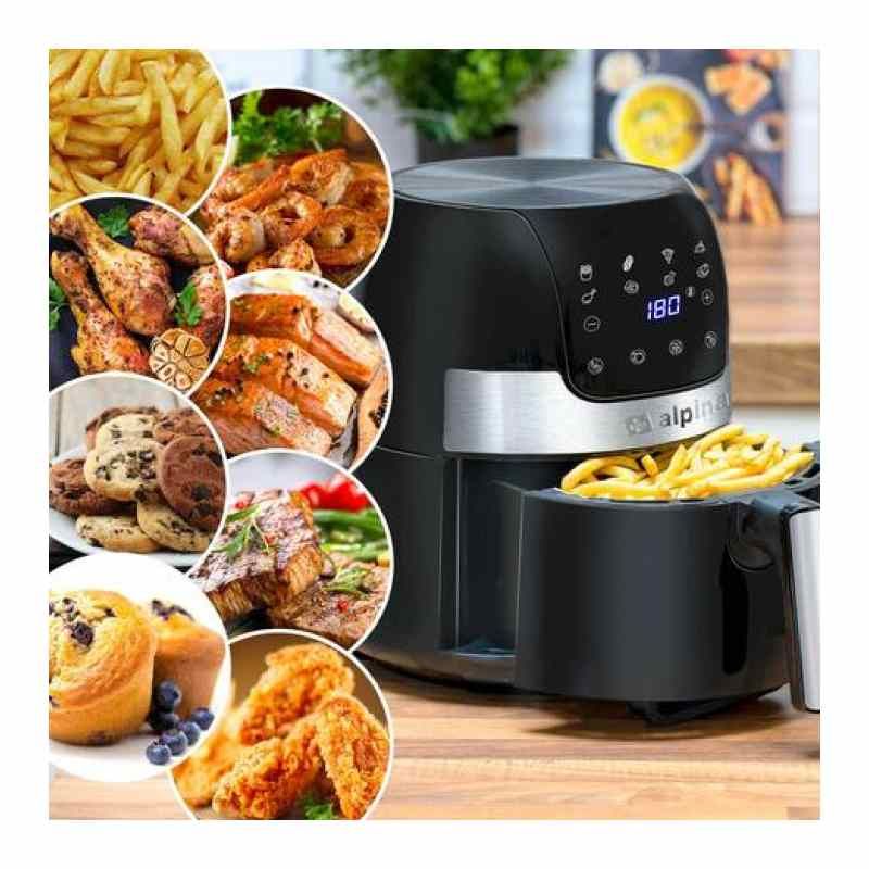 • Boljše od oljnih cvrtnikov – uživajte v svoji najljubši hrani brez nezdravih transmaščobnih kislin, ki jih zaužijete pri običajnem cvrtju v olju.- Učinkovita zamenjava pečice – fritezo na vroč zrak uporabite kot konvekcijsko pečico za skoraj vse, kar bi ocvrli v običajni pečici, vendar hitreje zaradi manjšega prostora!Primeren za pomivalni stroj – po uporabi friteze lahko košaro za peko preprosto postavite v pomivalni stroj in jo hitro in enostavno očistiteistili.Časov Varčna priprava – friteza na vroč zrak ne spodbuja le bolj zdravega kuhanja, ampak tudi pospešuje pripravo hrane. Poslovite se od dolgih časov segrevanja – pripravljen je za uporabo v nekaj trenutkih. prostorsko varčna zasnova – kompaktna zasnova alpina Airfryerjev se brezhibno prilega vaši kuhinjski delovni površini in prihrani dragocen prostor, hkrati pa zagotavlja izjemne rezultate.- Prostornina: 3,5 l- Moč: 1400 W- Dimenzije: 274 × 323 × 354 mm- Teža: 3,6 kg- Vhodna napetost: 220–240 V 50–60 Hz- Digitalni zaslon- Gumbi za prednastavitev živil- Nastavljiva temperatura: 80–200 °C