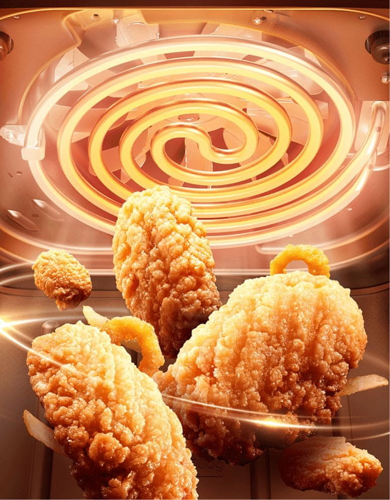 Zdrav način priprave hrane brez odvečne maščobe. Pametni cvrtnik z močjo 1600 W in kapaciteto 5,5 L omogoča enakomerno pečenje pri temperaturah od 40 do 220 °C. Prozorno okno, vgrajeni recepti in glasovno upravljanje preko Google Assistant poskrbijo za enostavno in učinkovito kuhanje.