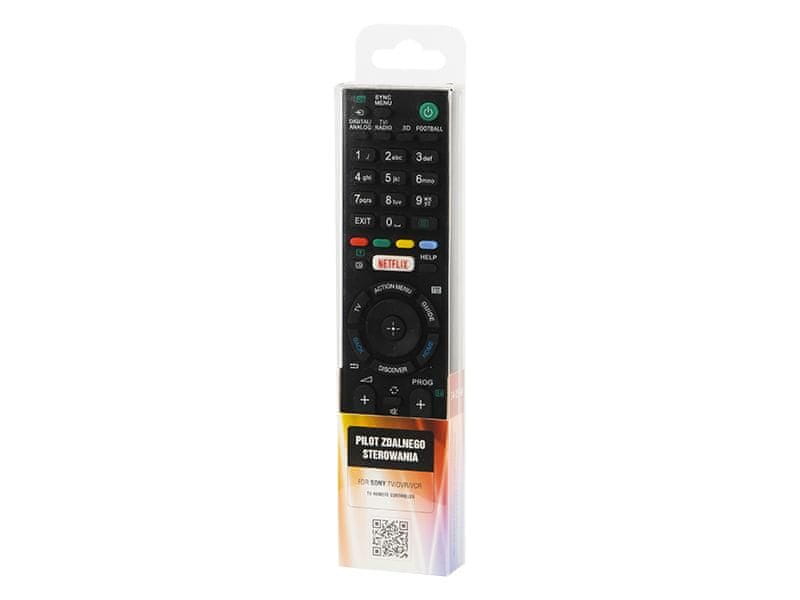 Univerzalni daljinski upravljalnik, ki omogoča upravljanje naslednjih SONY naprav: TV, VCR, DVR. Izdelek ima potrebne gumbe za osnovno delovanje teh naprav. Enostavna oblika in postavitev zagotavljata popolnoma enostavno in intuitivno upravljanje. Za izdelavo pilota so bili uporabljeni visokokakovostni materiali, ki zagotavljajo dolgo obstojnost izdelka. Idealen za nadzor vaše naprave, ko se tovarniški daljinski upravljalnik izgubi ali poškoduje.