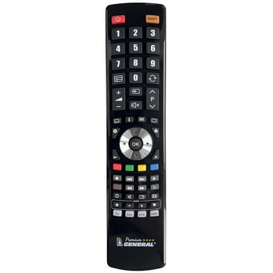 Večnamenski daljinski upravljalnik General PREMIUM z naprednimi funkcijami. Edini univerzalni daljinski upravljalnik, ki resnično deluje za skoraj vse daljinske upravljalnike na evropskem trgu. Trenutno baza vsebuje več kot 450 tisoč modelov TV, VCR, DVD, SAT, DVB-T, HiFi, PVR ETA… Našo bazo nenehno širimo glede na želje, zahteve in predloge naših strank.