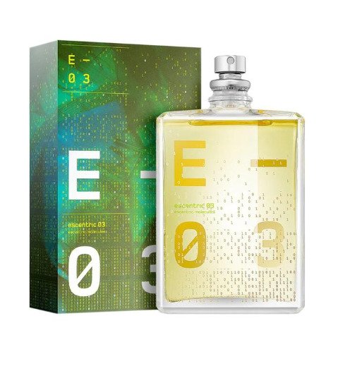 Escentric 03 Eau de Toilette by Escentric Molekules je dišava, podobna lesu, za moške in ženske (uniseks). Odpirajo se poper, lipa in ingver. Potem se jasmin, čaj in iris v središču dišave odvijejo, zaključek pa vključuje usnje, deviško cedro, sandalovino, mošus in vetiver. Začela se je leta 2010. Celoten opis