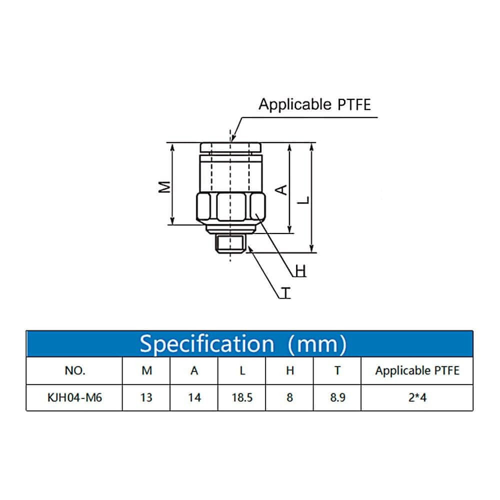 Zanesljiva hitra spojka KJH-04 M6 za 4mm Bowden cev. Idealna za priklop ekstruderja na hotend. Trpežna, enostavna za namestitev, pet kosov v paketu. Celoten opis
