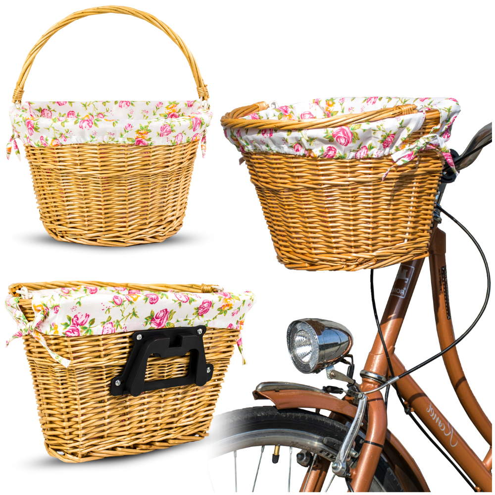 ☘️ Pletena košara je primerna za vse modele koles z velikostmi koles 20", 24", 26", 27", 28" in krmilom s premerom 20–25 mm. Zato bo dobro delovala tako na običajnih, mestnih kot tudi na potovalnih kolesih.