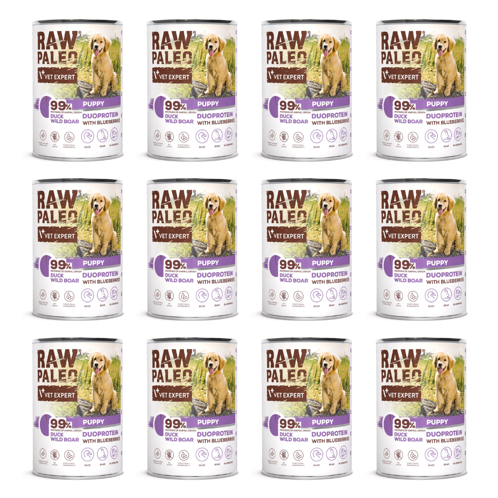 shumee Raw Paleo Duck&Boar Puppy Can mokra hrana za pse 12 x 400 g