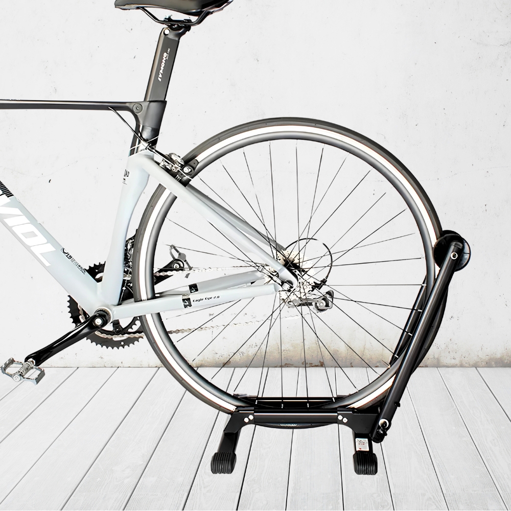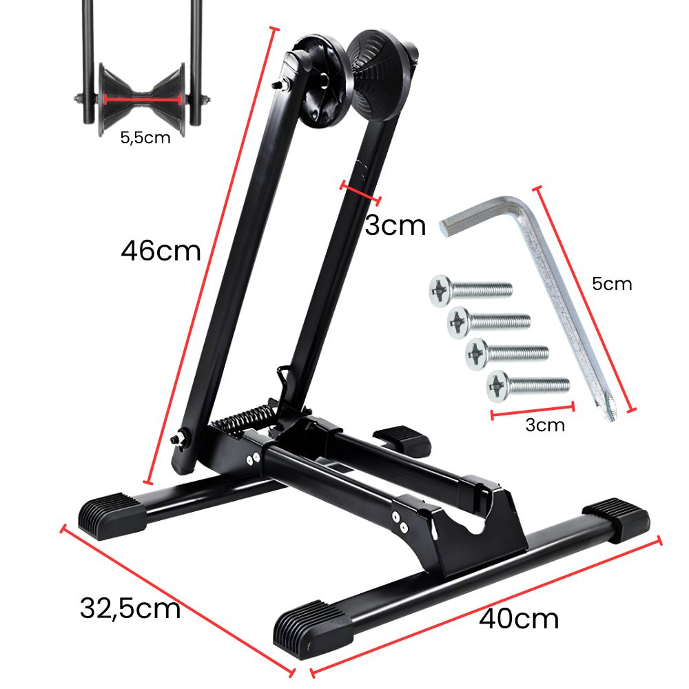 Zahvaljujoč zložljivi strukturi je naše stojalo za kolo izjemno priročno za shranjevanje in prevoz Lahko ga enostavno zložite in shranite , ko ga ne potrebujete, ali pa ga vzamete s seboj na potovanje. To je idealna rešitev za ljudi, ki cenijo funkcionalnost in udobje. Stojalo je izdelano iz prašno barvanega jekla , noge pa imajo plastične pokrovčke, zaradi katerih je stojalo stabilno in ne poškoduje tal.