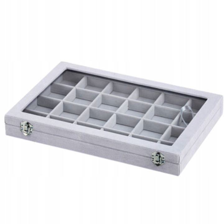 Korbi Škatla - razstavno stojalo za zapestnice, prstane in nakit, siva zapiralna pladnja E10