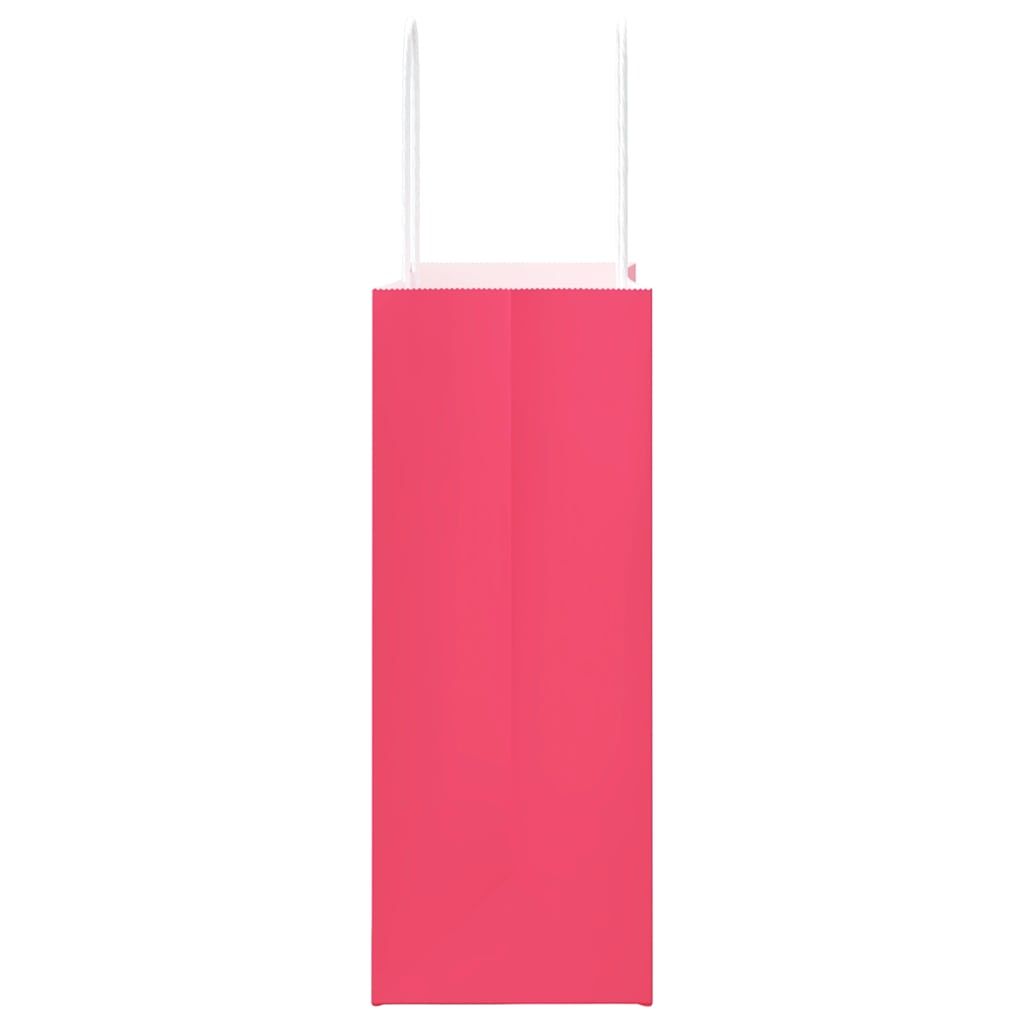 Vidaxl Papirnate vrečke 50 kosov z ročaji roza 21x11x28 cm