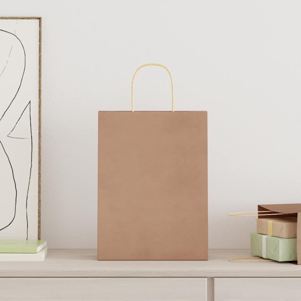 Vidaxl Papirnate vrečke 50 kosov z ročaji rjave barve 26x12x35 cm