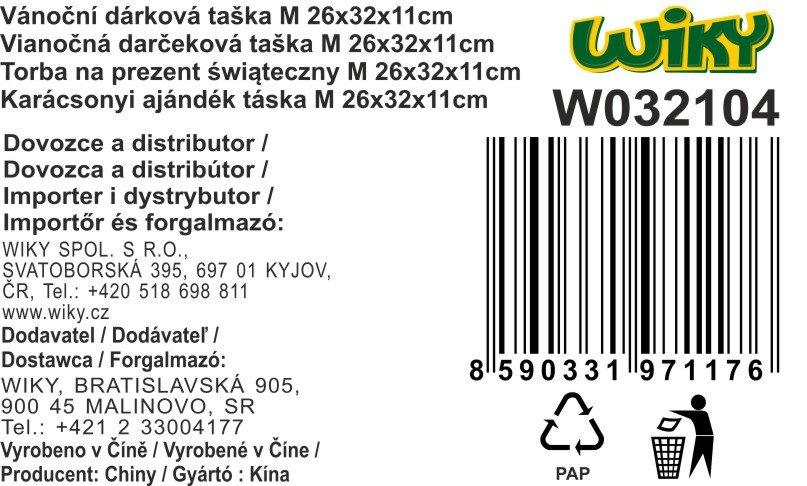 Velikost darilne vrečke M 26×32×11 cm Božič. 4 različne barve. Celoten opis