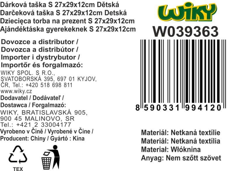 Darilna vrečka S 27×29×12 cm Otroška – netkani material 4 vrste Celoten opis