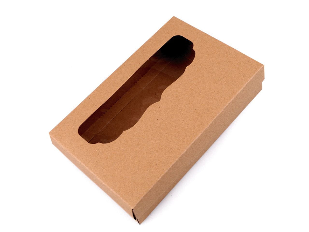 Prozorna papirnata škatla - naravno rjava (10 kosov) z okrasnim izrezom