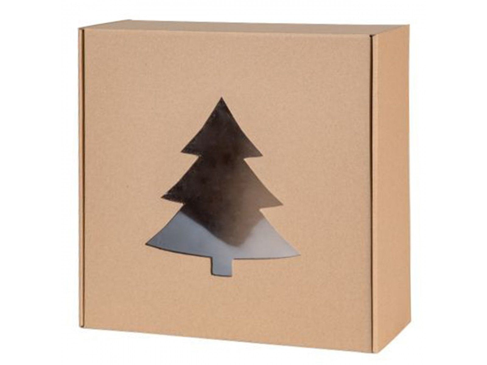 Škatla kvadratnega preseka z okencem v obliki božičnega drevesa je idealna za božična darila.Izdelan je iz trpežnega kartona in meri 30×30×10 cm ter poleg estetskega videza zagotavlja tudi zanesljivo zaščito vsebine.Prozorno okence v obliki božičnega drevesca daje škatli praznični pridih in omogoča pogled v notranjost, zato je darilo videti še bolj impresivno.Ta praktična embalaža je kot nalašč za manjša in večja darila, saj jim daje edinstven praznični pridih.