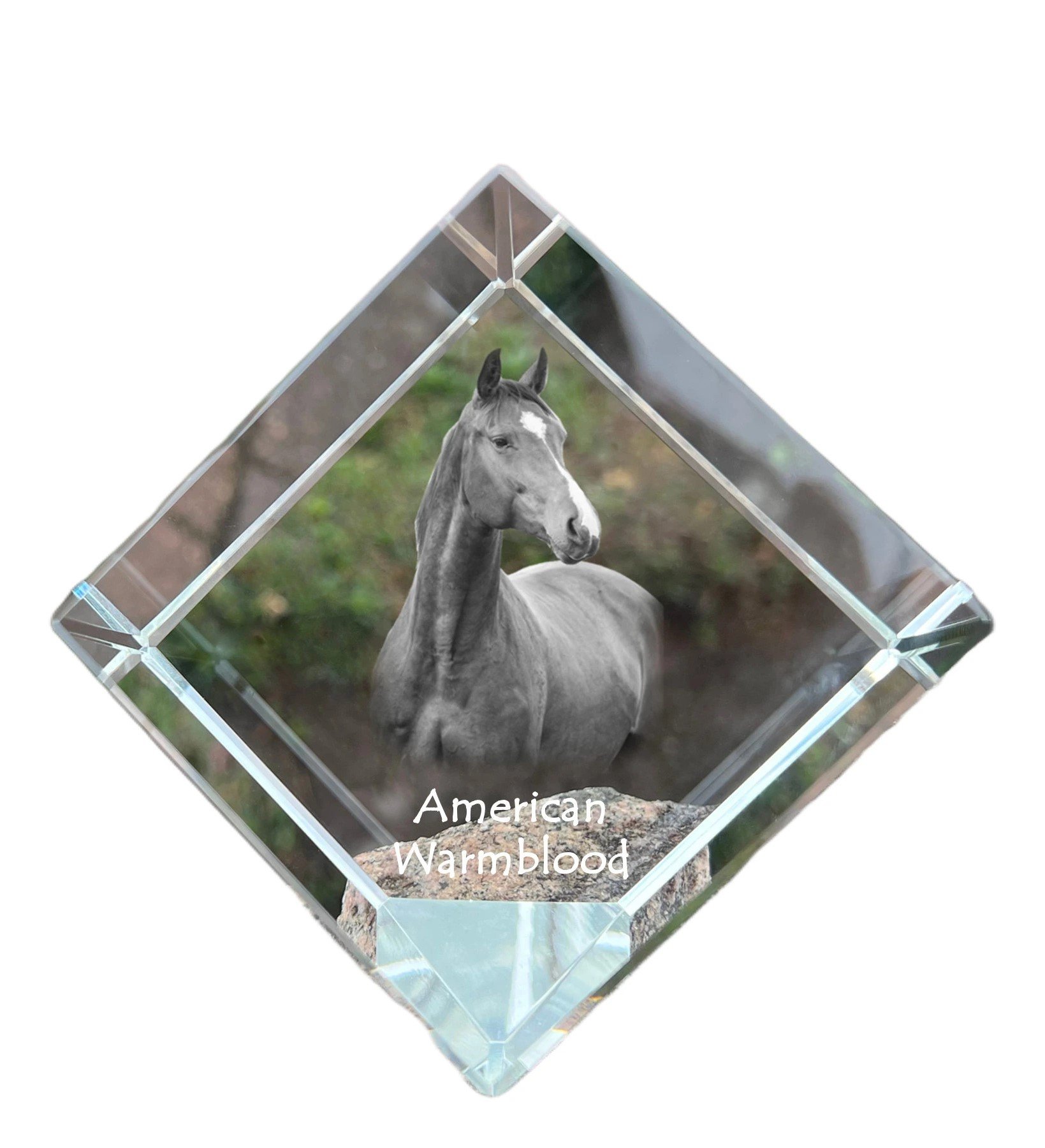 Artdog American Warmblood - kristalna kocka s fotografijo konja, fotografija konja v kristalu, kubični obtežilnik za papir Art-Dog