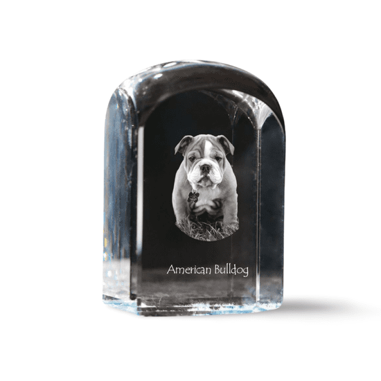 Artdog Ameriški buldog - kristalna kocka s fotografijo, fotografija psa v kristalu, kubični obtežilnik za papir Art-Dog