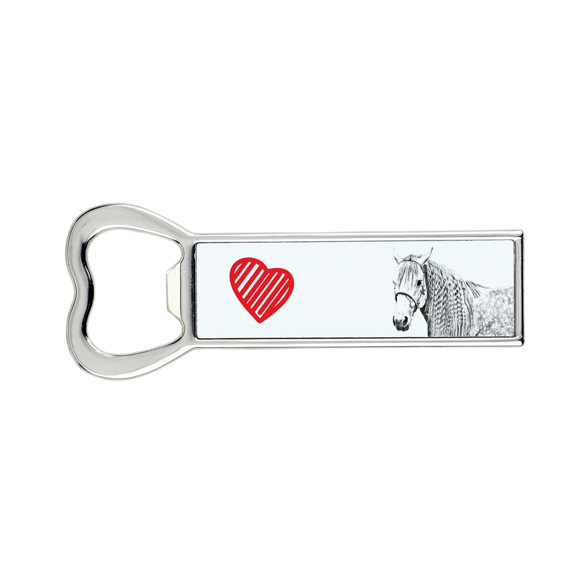 Na dan, ko je treba nazdraviti, bo ta odpirač poskrbel, da bo praznovanje še prijetnejše za vsakega ljubitelja živali. Klasičen odpirač za steklenice krasi unikatna grafika s podobo psa, mačke ali konja. Izdelek ima na zadnji strani dva magneta, zahvaljujoč katerima lahko pripomoček pritrdite na hladilnik in ga imate vedno pri roki. Lahko ga naredite še bolj očarljivega tako, da nam pošljete fotografijo vašega ljubljenčka! Natisnili jih bomo v originalnih barvah ali pretvorili v „pencil skico“ različico, ki je vidna v tej ponudbi – odločitev je vaša.