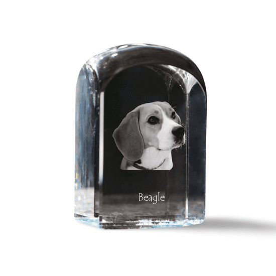 Artdog Beagle - kristalna kocka s fotografijo, fotografija psa v kristalu, kubični obtežilnik za papir Art-Dog