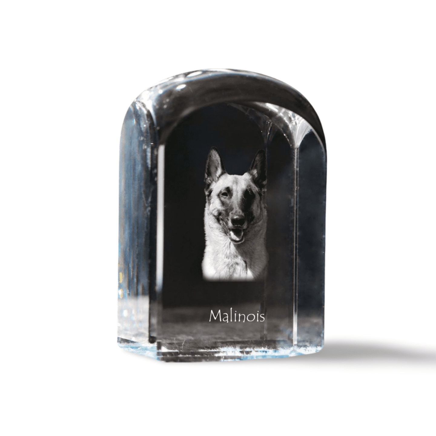 Artdog Belgijski ovčar Malinois - kristalna kocka s fotografijo, fotografija psa v kristalu, kubični obtežilnik za papir Art-Dog