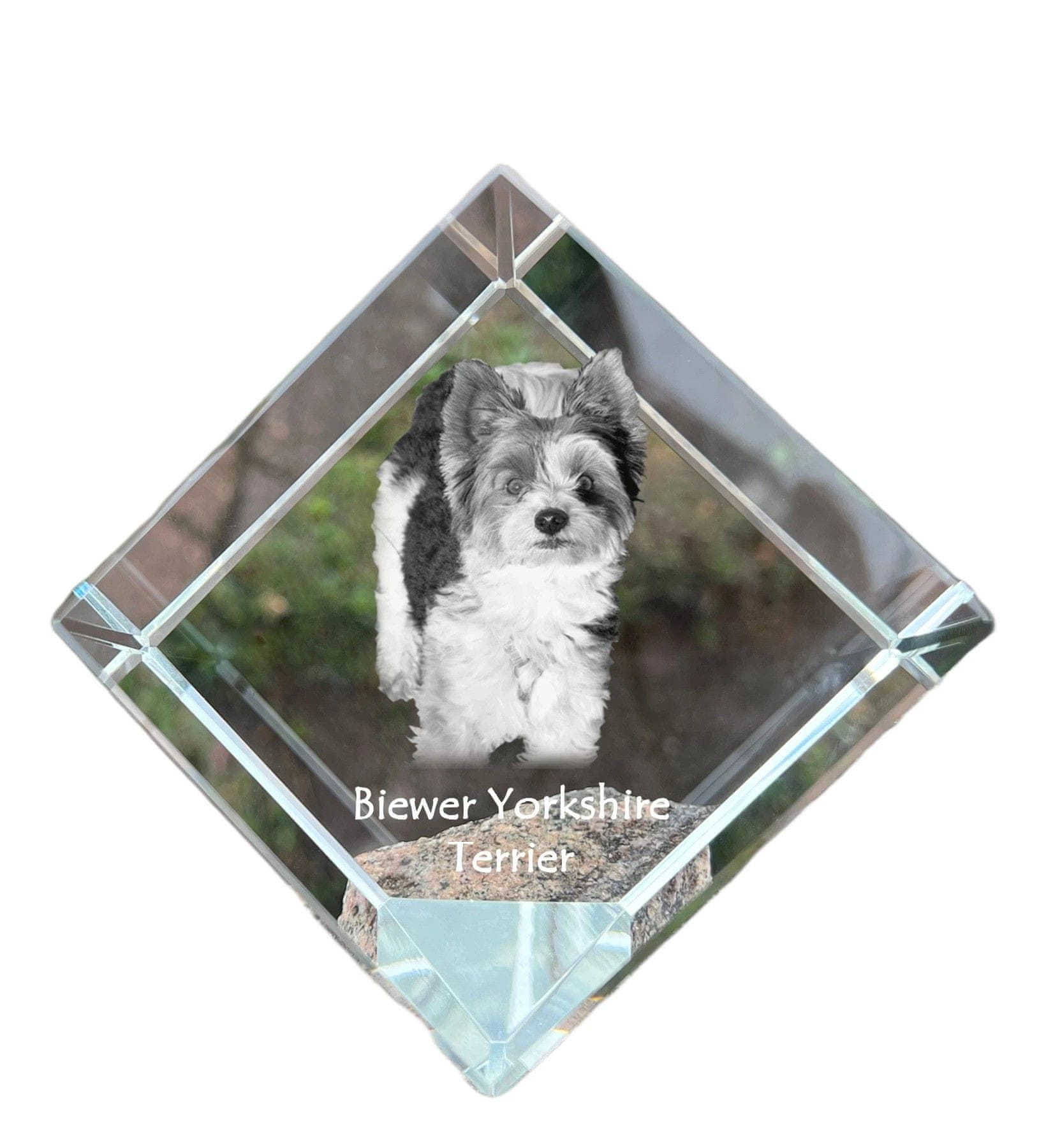 Artdog Biewer Yorkshire Terrier - kristalna kocka s fotografijo, fotografija konja v kristalu, kubični obtežilnik za papir Art-Dog