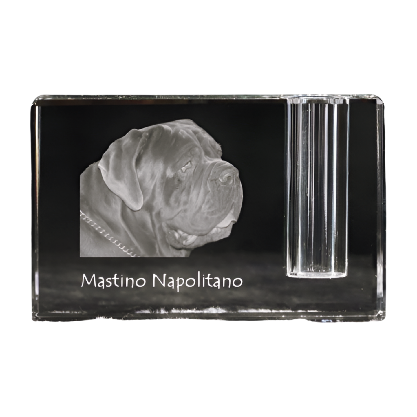 Neapeljski mastif, Neapeljski mastif, Mastino napoletano – stojalo za pisala, kristalni organizator s fotografijo psa, unikatna namizna dekoracija Art-Dog Celoten opis