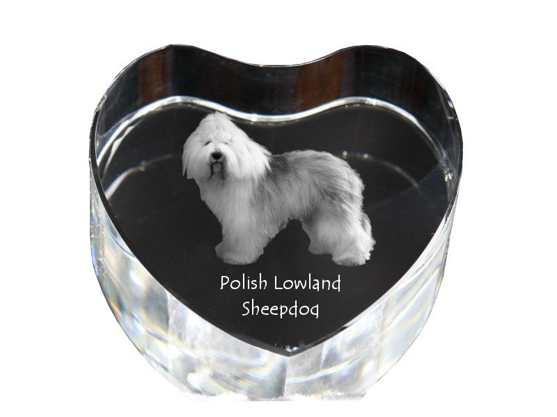 Poljski nižinski ovčar, PON – fotografija psa v kristalu, kristalno srce, unikaten okvir s fotografijo Art-Dog Celoten opis
