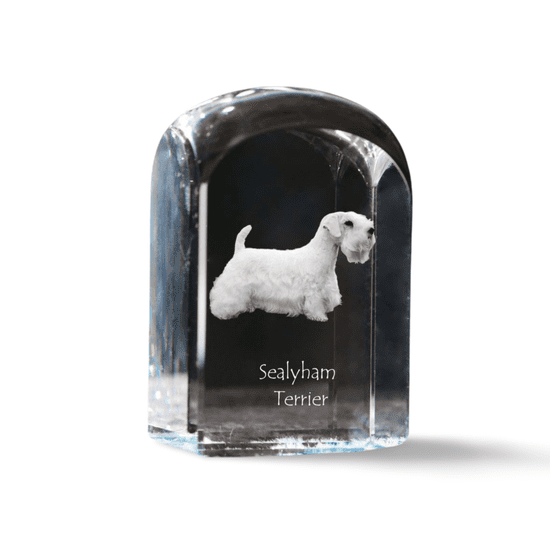 Artdog Sealyham terier - kristalna kocka s fotografijo, fotografija psa v kristalu, kubični obtežilnik za papir Art-Dog