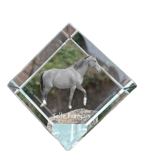 Artdog Selle Francais - kristalna kocka s fotografijo konja, fotografija konja v kristalu, kubični obtežilnik za papir Art-Dog