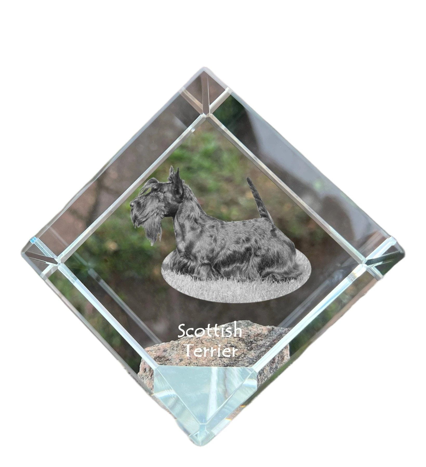 Artdog Škotski terier, Aberdeen terier - kristalna kocka s fotografijo, fotografija konja v kristalu, kubični obtežilnik za papir Art-Dog