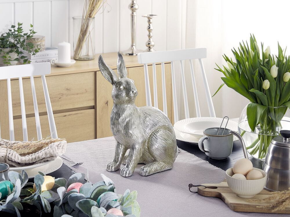 Dekorativne figurice so odličen način za izboljšanje vaše notranjosti. Ne zavzamejo veliko prostora in z njimi lahko ustvarite skladno kompozicijo. To figurico zajca lahko uporabite kot del praznične velikonočne dekoracije ali kot prikupno živalsko dekoracijo v vašem domu. Izdelan je iz sintetične smole, je zelo trpežen in tudi videti je odlično.