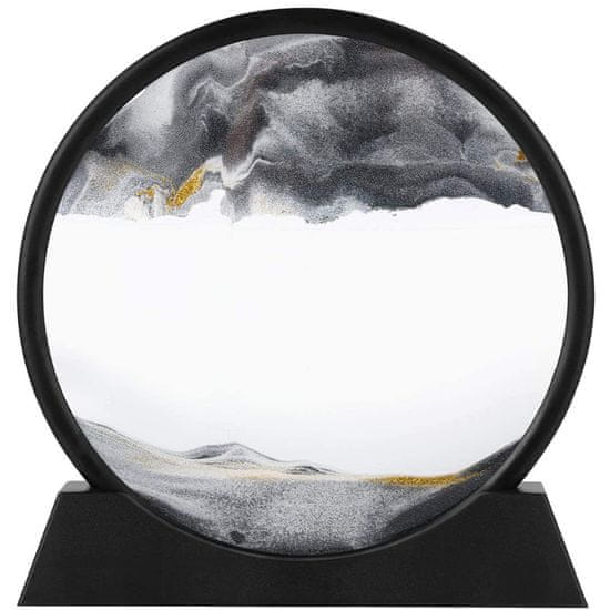 To je zelo lepa umetniška slika živega peska. Izdelek ima okrogel videz. Na voljo so tri barve peska, črna, bela in zlata. Z različnimi postavitvami in snemanjem ustvari različne čudovite pokrajine. Zaradi krožnega dizajna se razlikuje od drugih, ne samo da ima sodoben pomen, ampak tudi kaže mirno in stabilno vzdušje, ki je drugačno od drugih.
