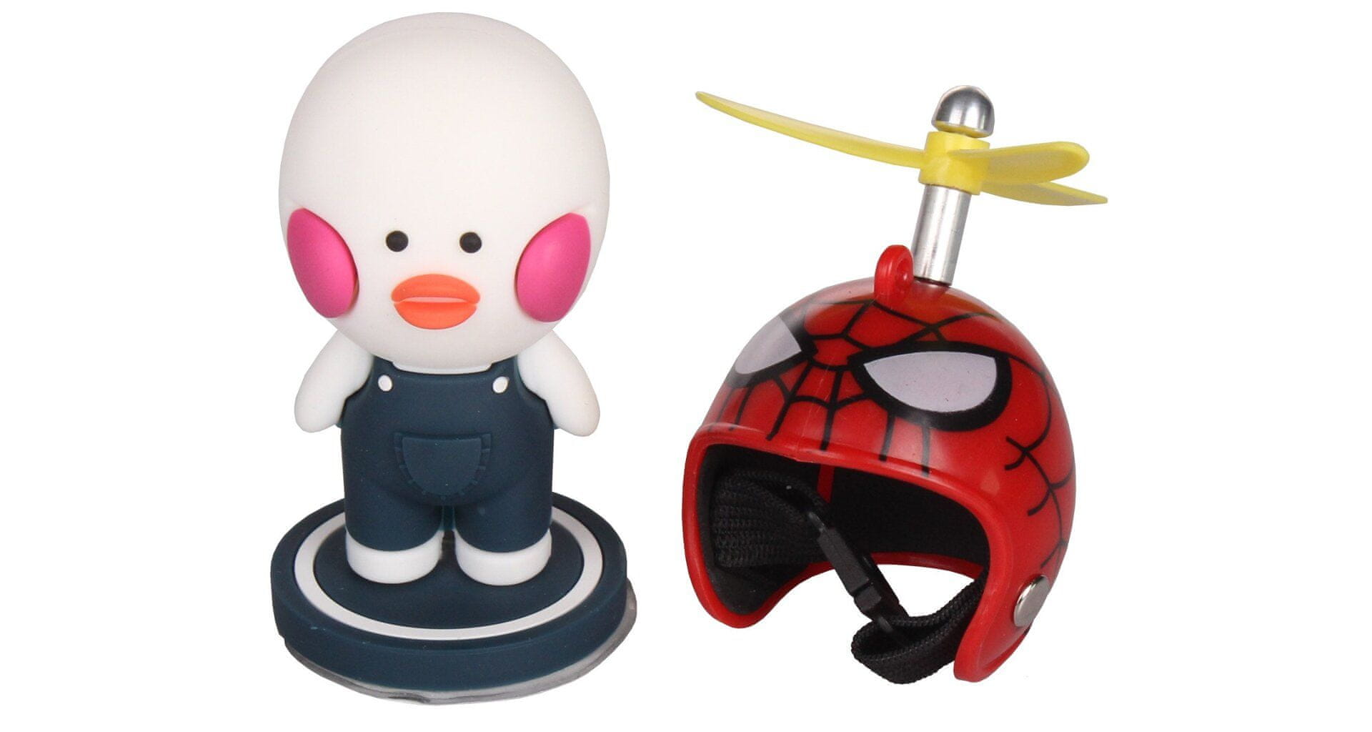 Ste ljubitelj dekorativnih figur in želite razširiti svojo zbirko? Okrasna račka Spiderduck bo krasila vsako polico, mizo ali armaturno ploščo avtomobila. Z lepilno nalepko na spodnjem delu figurice lahko račko trdno pritrdite na omenjena mesta. Čelado s propelerjem in motivom velikega Spidermana lahko snamete ali si jo nadenete. Ta prijetna dekoracija za sobo bo nasmejala marsikaterega otroka. Ni primerno za otroke, mlajše od 6 let. Parametri: mere: 9 × 4 cm teža: 56 g material: PVC, ABS