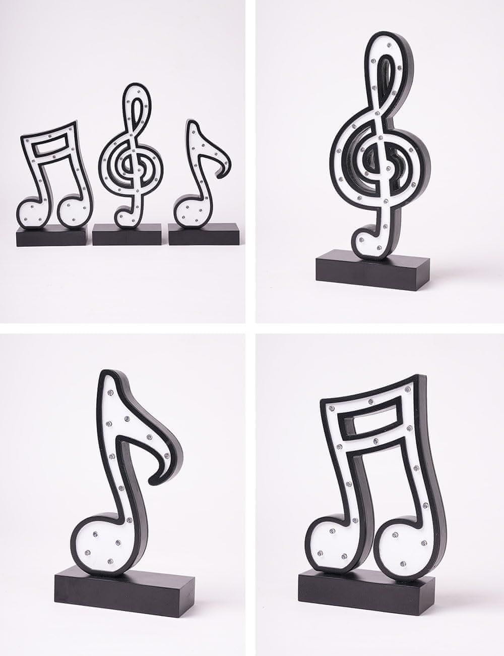 Nikcorp Moderna namizna LED svetilka v obliki glasbenih not, 3-delna lesena dekoracija za dom, črna, 29 cm