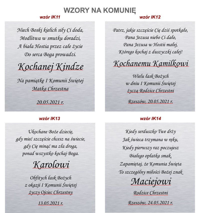 Po oddaji naročila v sporočilu prodajalcu posredujte besedilo gravure in barvo plošče. Če barva ni določena, se gravura izvede na srebrni plošči.