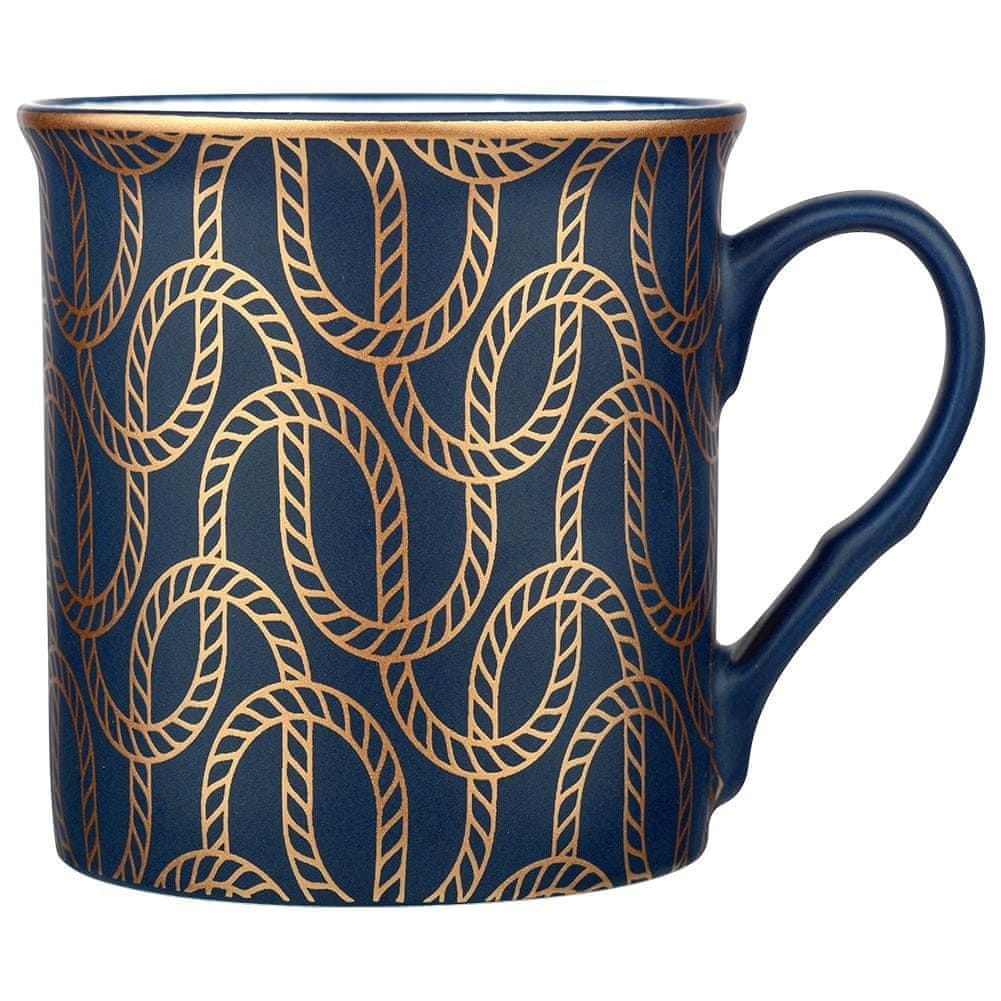 UNBRANDED Mornarsko modre porcelanaste skodelice z zlatim vzorcem, 6 kosov