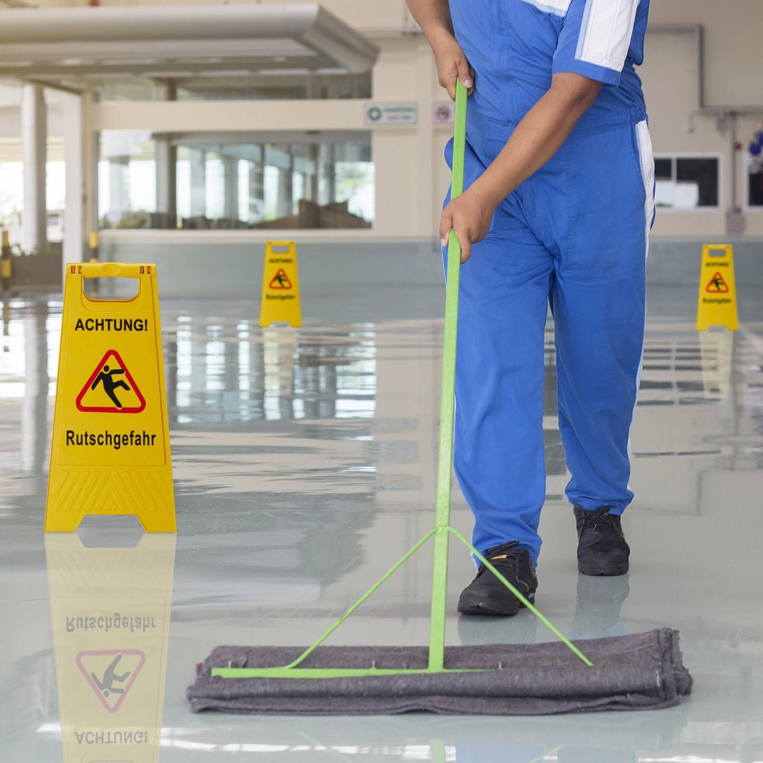 • Preprosto postavite na mokra, spolzka ali sveže pomita tla.